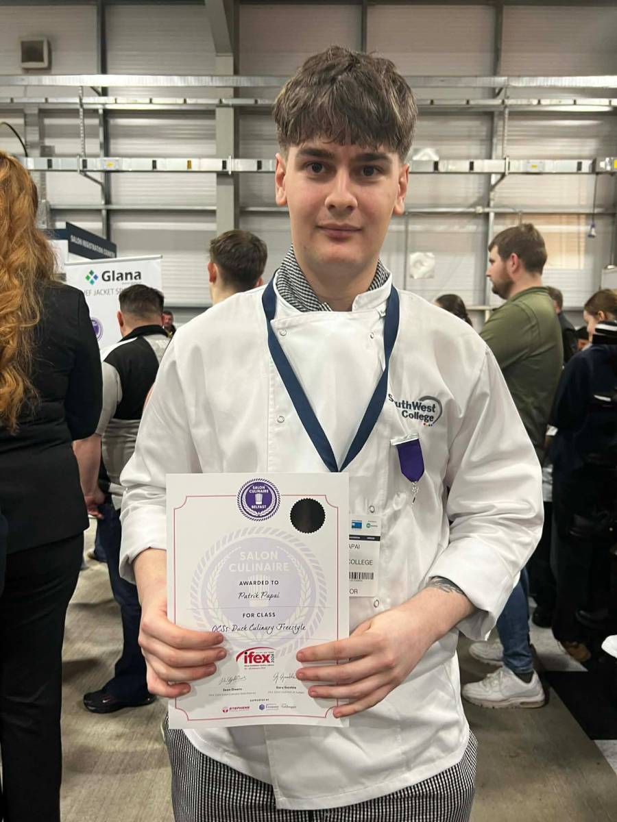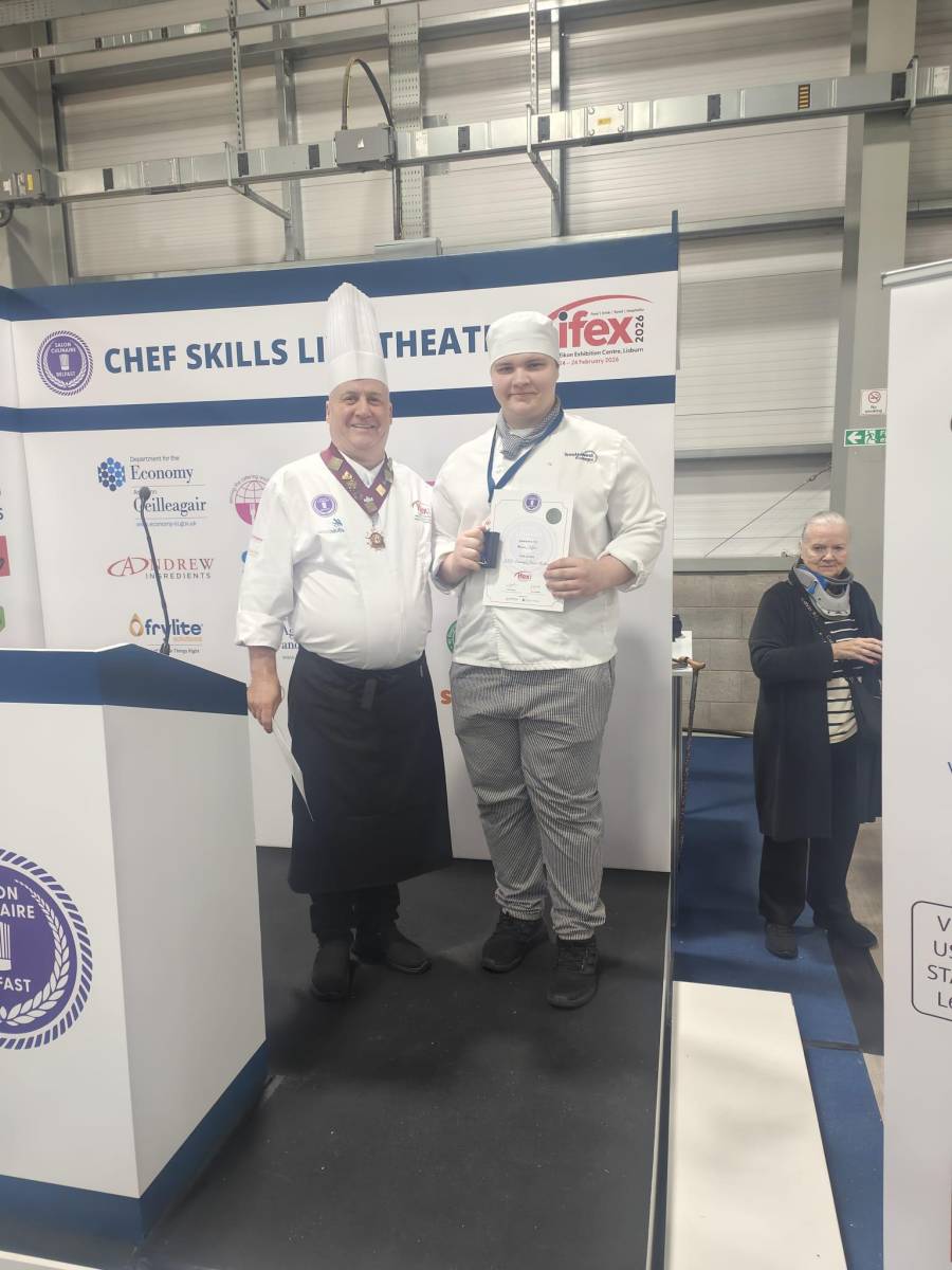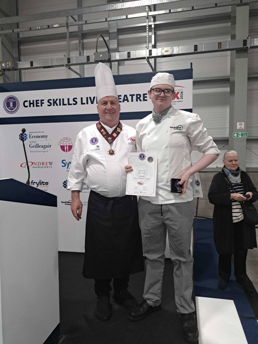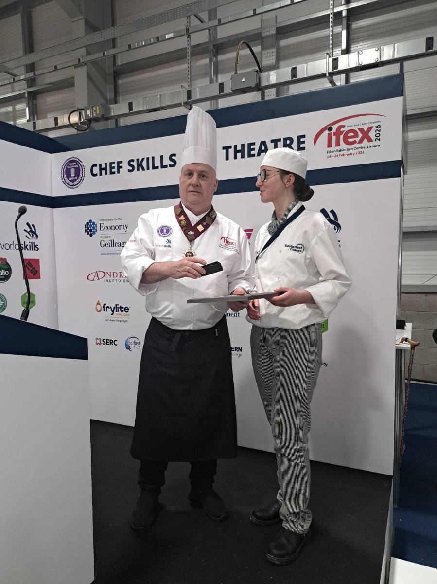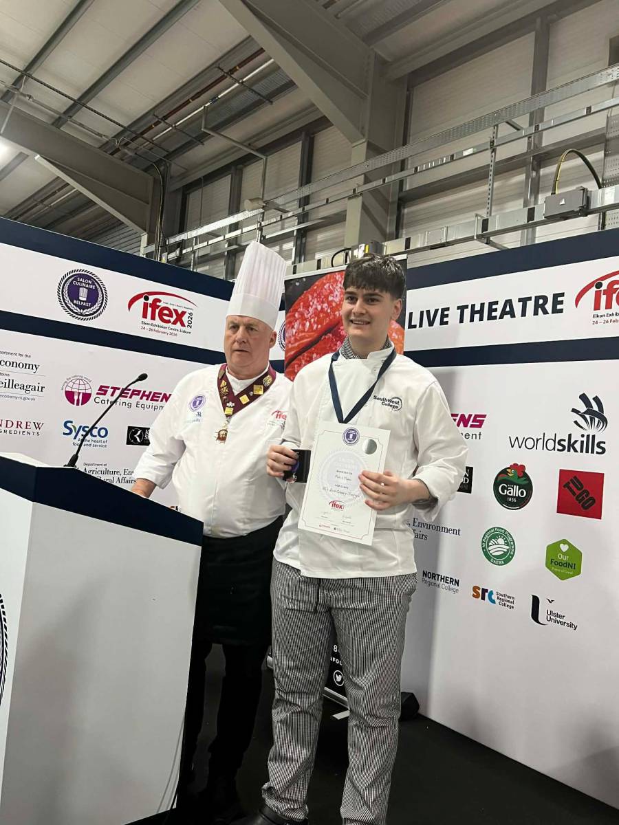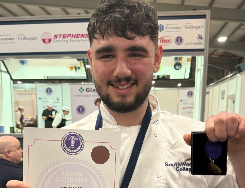 South West College (SWC) Hospitality and Catering students have delivered an exceptional performance at this year’s IFEX Exhibition, held at the Eikon Exhibition Centre. Often described as “the Oscars of the culinary world,” IFEX is renowned for its high standards, demanding exceptional technical skill, creativity, precision and professionalism.
